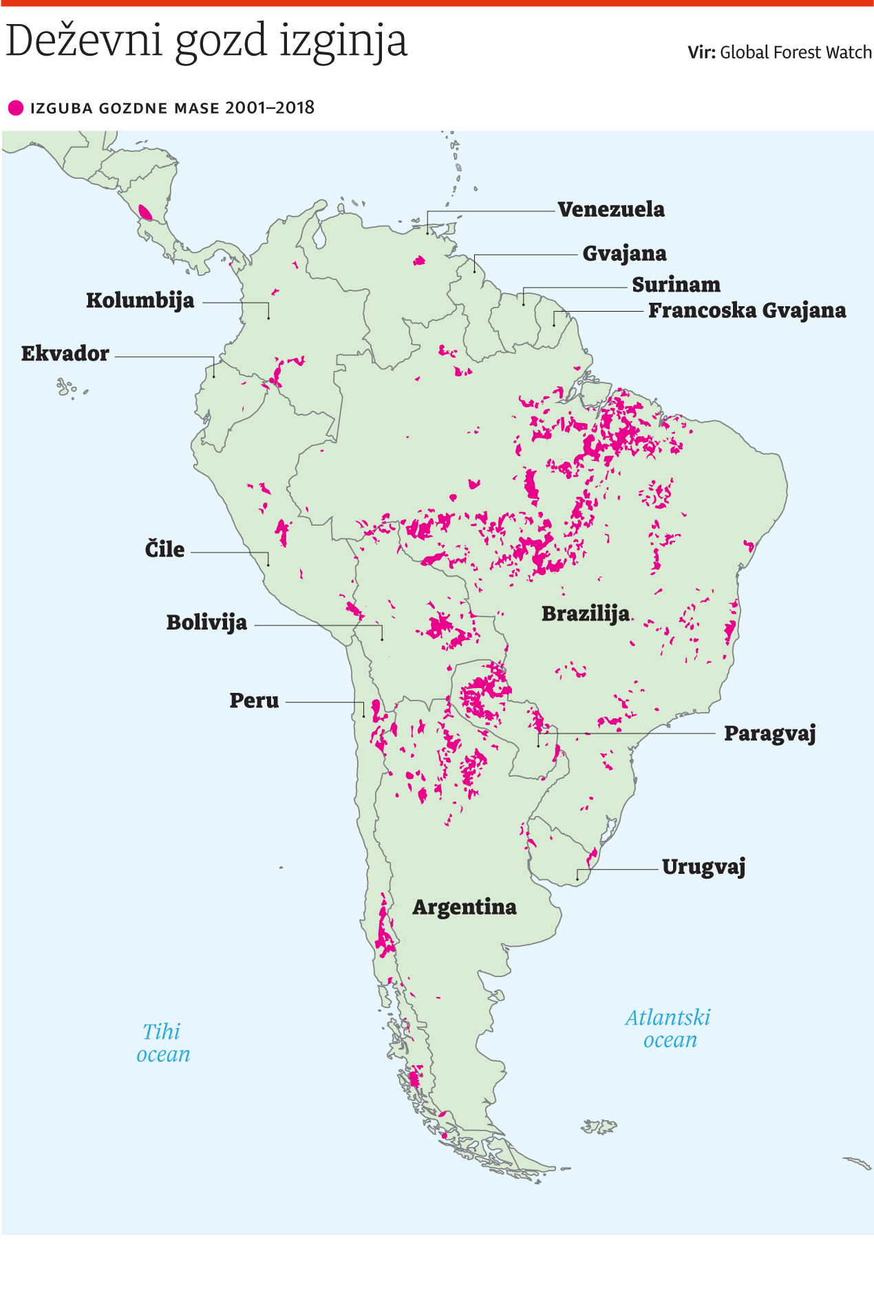 Zadnje mesece pa v mednarodni javnosti, posebej v znanstvenih krogih, raste zaskrbljenost zaradi uničevalskih posegov v brazilskem delu Amazonije, ki so posledica predatorske okoljske politike skrajno desnega predsednika Jaira Bolsonara. V sedmih mesecih, odkar je na oblasti, je bilo izkrčenih več kot 3000 kvadratnih kilometrov deževnega pragozda, samo junija letos okoli tisoč, kar pomeni 88,4 odstotka več kot v istem mesecu lani. Znanstveniki opozarjajo, da se pospešeno krčenje prvobitnega gozdnega pokrova Amazonije približuje 20 do 25 odstotkom, torej meji, ko naj ne bi bilo več mogoče ustaviti nepopravljivega spreminjanja krajine v degradirano savano, kar bi hudo prizadelo biotsko pestrost in avtohtone prebivalce ter pospešilo podnebne spremembe na svetovni ravni.