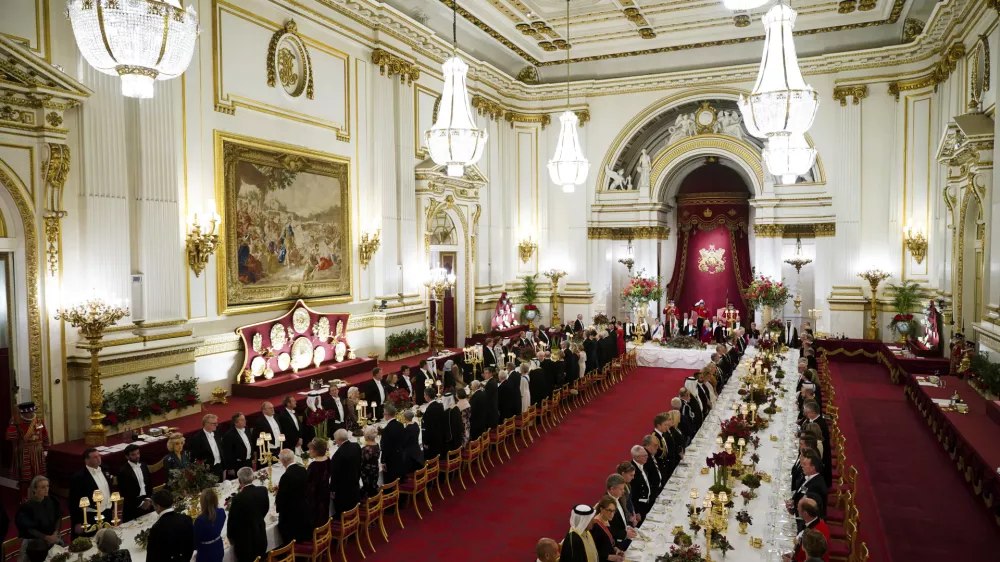 Razkošni banket v plesni dvorani Buckinghamske palače je povedal vse o tem, kako velik pomen Britanija pripisuje odnosom s Katarjem, ki je že desetletja med petimi najbogatejšimi državami na svetu. Na mizah, za katerimi je sedelo 170 imenitnih gostov, je bilo 4000 kosov srebrnega jedilnega pribora. Nad krožniki je bilo pet kozarcev za različne alkoholne in druge pijače. Jedilnik je vseboval tartlet cornwalskega jastoga in prepeličja jajca za predjed, glavno jed so sestavljali windsorski fazan, zavit v savojsko zelje, praženi pire iz zelene in gratinirani krompir s sirom iz Suffolka, omaka iz tartufov in zimska zelenjava. Sladica je bila »ledena bomba« z organskim samoanskim vaniljevim sladoledom in sorbetom iz sliv. Veliko o tem, kaj vse lahko kupi katarski denar, je pokazala navzočnost »kraljevega« para estrade, Davida in Victorie Beckham, ki nista mogla manjkati na banketu. Kot britanska monarhija in vlada ima tudi Beckham tesne odnose s Katarjem. Bil je ambasador svetovnega nogometnega prvenstva v Katarju leta 2022, za kar je pospravil 12 milijonov evrov. Številni so ga takrat kritizirali kot pohlepnega zvezdnika. Katar tako lepo ponazarja, da je denar sveta vladar.