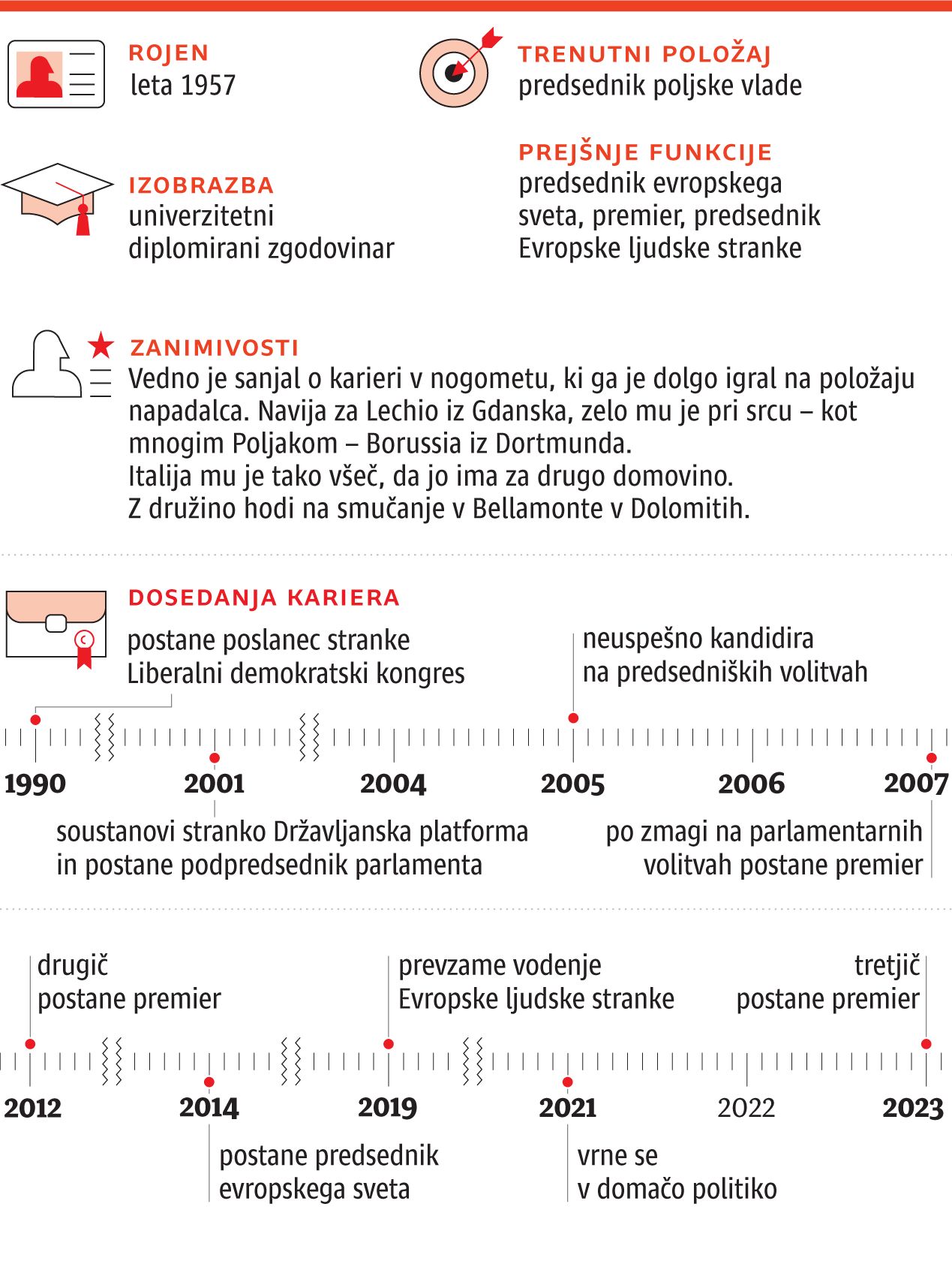Proevropsko usmeritev ima Tusk v krvi, in to še iz časov, preden se je v Evropski uniji povzpel na enega izmed treh najvišjih položajev. V letih 2014–2019 je bil predsednik evropskega sveta, drugi od samo treh doslej na tem položaju (ob Hermanu van Rompuyu in zdajšnjemu Charlesu Michelu), odkar so odpravili rotirajoče predsedstvo in položaj naredili za stalnega. Ko je v sredo po prisegi vlade odletel v Bruselj na vrh voditeljev držav članic, se je znašel v zanimivi vlogi – kot eden od članov telesa, ki mu je nekoč predsedoval.