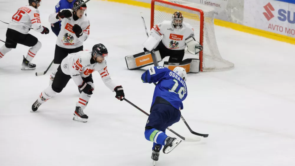 Izbranci selektorja Eda Terglava so pred odhodom v Latvijo dvakrat klonili proti Avstriji. Če so v četrtek na Bledu Avstrijci do zmage prišli z golom v podaljšku, so v soboto Slovence strli že po rednem delu igre. Spet je povedla slovenska reprezentanca, v sedmi minuti je bil uspešen Žan Jezovšek, ki ga je slovenski selektor naknadno poklical po poškodbi Roka Kapla, z goloma v drugi tretjini, uspešna sta bila David Reinbacher (26) in Vinzenz Rohrer (34), pa so do zmage prišli domači hokejisti.