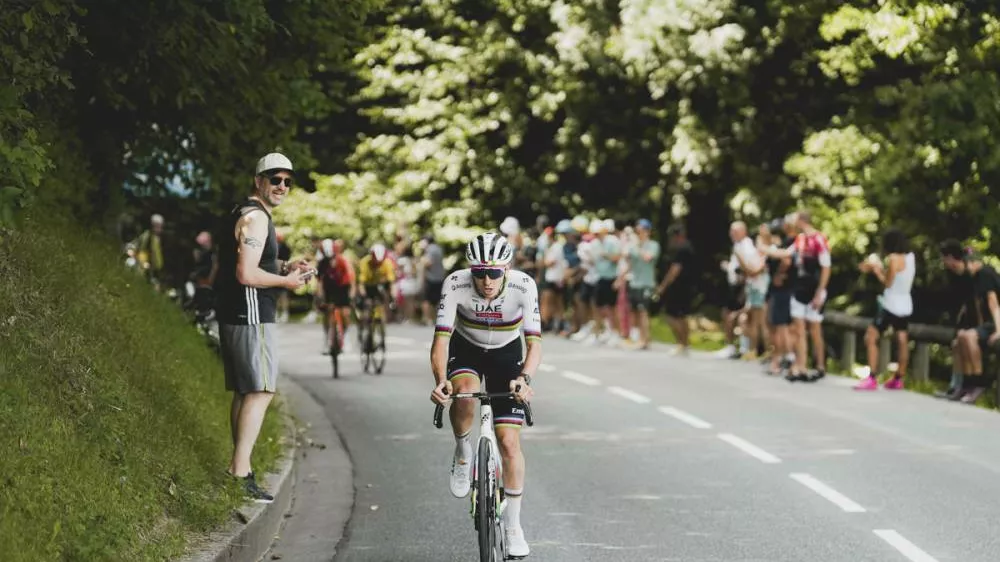 Kako hitro so bili na poti kolesarji, kaže dejstvo, da je Pogi ciljno črto prečkal močno pred predvideno časovnico. »Želel sem si pogledati zaključek dirke po Švici, kako dirka Urška (Žigart, op. p). Prišel sem ravno ob pravem času,« je z nasmehom dejal kapetan Emiratov, ko se je na kolesu še ohlajal po vročem in eksplozivnem dnevu v pisarni. Žal ob prenosu ženske dirke po Švici ni videl najboljših novic, saj je njegova zaročenka, ki je uvodno etapo zaključila na izjemnem petem mestu, tokrat zaostala v zaključku etape. Na cilj je prišla kot 14. s tremi minutami in 17 sekundami zaostanka za zmagovalko Amber Kraak. Žigartova, ki nastopa za moštvo AG Insurance - Soudal Team je skupno sedaj na sedmem mestu.