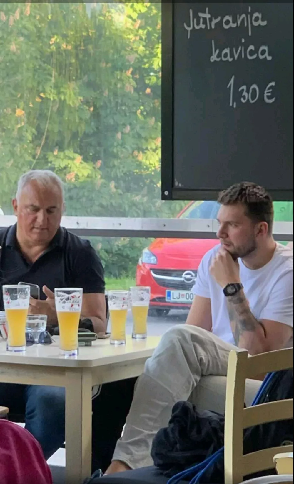 V družbi očeta Saše Dončića in prijateljev se zvezdnik v tem času mudi v Tivoliju, kjer v tamkajšnji dvorani poteka tekma med ekipama Ilirija in Šentjur.