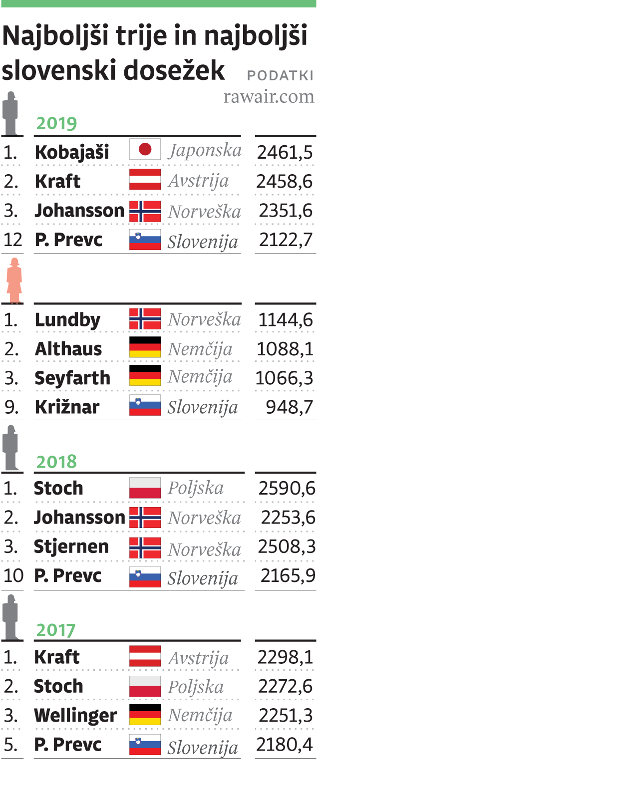 Branilec naslova Kobajaši je imel lani pred drugouvrščenim Avstrijcem Stefanom Kraftom na koncu v skupnem seštevku zgolj 2,9 točke prednosti. Kraft, aktualni svetovni rekorder z 253,5 metra iz Vikersunda 2017, zadnje tekme prve norveške turneje, na kateri je pobral tudi skupno zmago, se lahko pohvali še z enim neverjetnim dosežkom na Raw Airu. Avstrijec, ki je trenutno vodilni v skupnem seštevku svetovnega pokala tako v skokih kot poletih, je namreč edini tekmovalec, ki je lani na vseh tekmah (štirih posamičnih in dveh ekipnih) stal na zmagovalnih stopničkah. Na posamičnih je bil po enkrat prvi (Lillehammer) in drugi (Holmenkollen) ter dvakrat tretji (Trondheim in Vikersund), z avstrijskimi rojaki pa je bil na Norveškem dvakrat tretji na ekipnih v Holmenkollnu in Vikersundu.