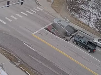 (VIDEO) Odprla se je zemlja in pogoltnila vozili, potniki preživeli padec v zevajočo luknjo