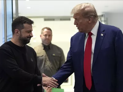 Trump in Zelenski Trump označil Zelenskega za "verjetno najboljšega prodajalca na svetu", danes pa mu ponudil pomoč