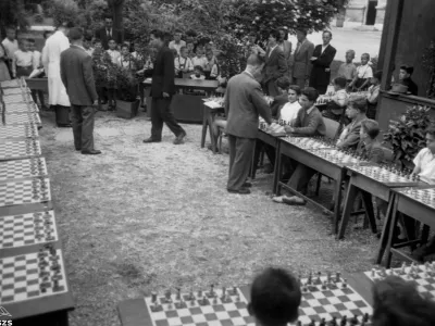 Šahovski vrhunci skozi arhivske posnetke; zanimanje javnosti je bilo zares veliko