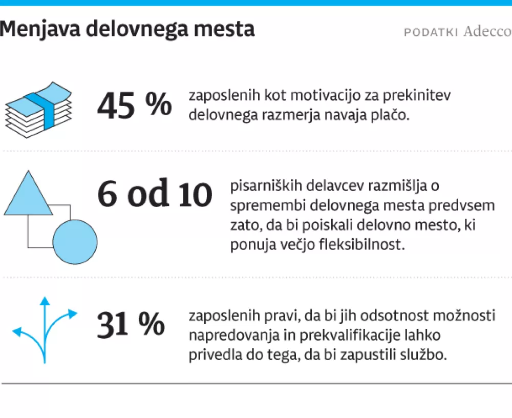Izziv se ne konča pri ponudbi primernega plačila, ampak vključuje tudi razumevanje raznolikih potreb zaposlenih – fleksibilnosti, poklicnega napredovanja in skrbi za duševno zdravje, tudi ravnovesja med delom in zasebnostjo. Osebni dohodek je sicer med ključnimi, ali bo delavec ostal ali pa bo šel drugam. Po globalnih raziskavah podjetja Adecco 45 odstotkov zaposlenih kot motivacijo za prekinitev delovnega razmerja navaja boljšo plačo. Vendar pa plača ni vedno odločilen dejavnik za ohranitev zaposlitve. Možnost kariernega napredovanja in prekvalifikacije pomembno vplivajo na zadovoljstvo in zadržanje talentov. 31 odstotkov zaposlenih pravi, da bi jih odsotnost možnosti napredovanja ali prekvalifikacije lahko privedla do tega, da bi zapustili službo.