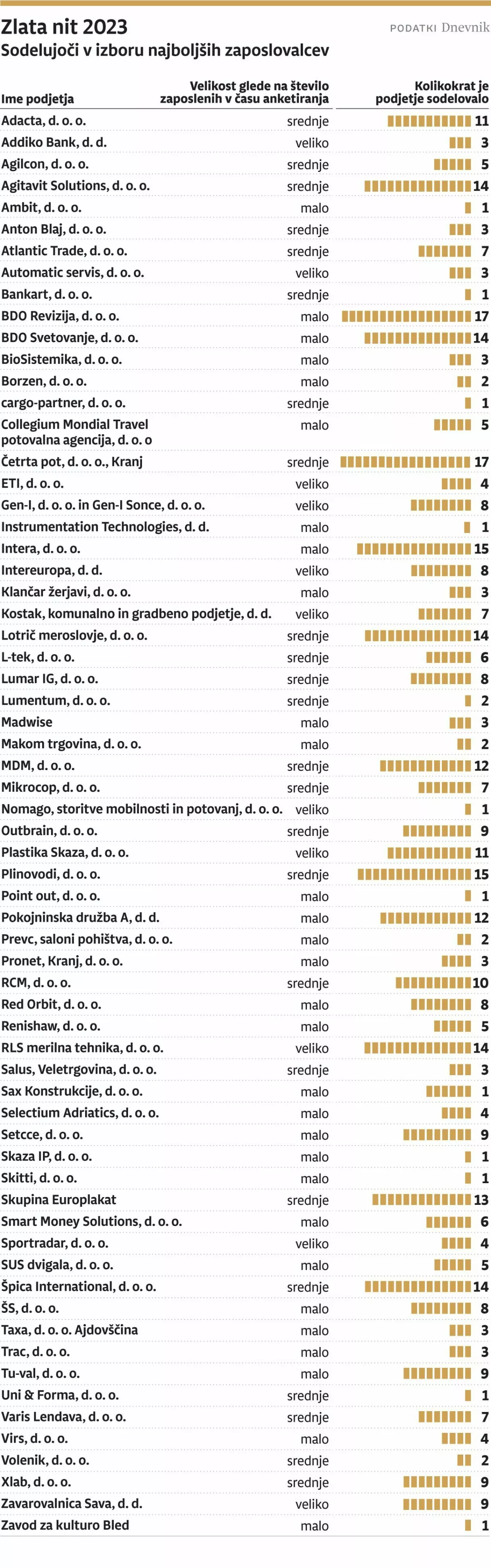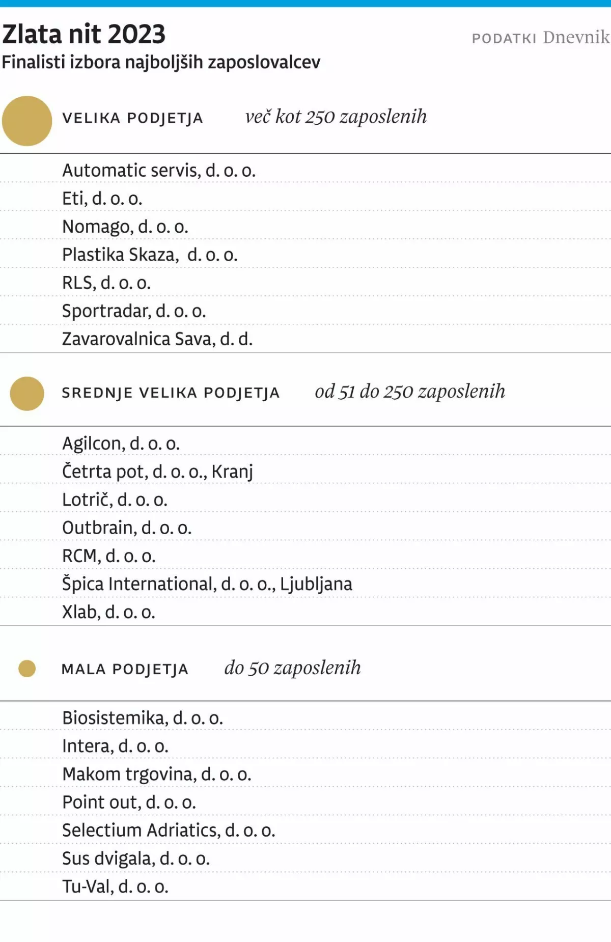 Dnevnikov medijski raziskovalni projekt Zlata nit je že sedemnajstič na zvezdniški oder postavil podjetja, ki v doseganju poslovne odličnosti stavijo na kakovostne odnose. Na slavnostni razglasitvi najboljših zaposlovalcev so v ljubljanskem Lutkovnem gledališču priznanje prejela podjetja Sportradar, Agilcon in Intera.