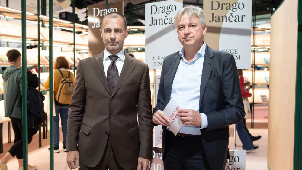 Takoj po tistem, ko se je Frankfurtski knjižni sejem včeraj popoldne odprl še za širšo javnost, je na sejmišču zavladala neznanska gneča: pred blagajnami ob vhodu so se vile vrste čakajočih, še hujši zastoji pa so nastali pred prodajnimi stojnicami posameznih domačih založb, zlasti v dvorani, posvečeni otroški in mladinski književnosti, kjer si je pretežno najstniško občinstvo nabiralo kupe najnovejših fantazijskih in ljubezenskih nanizank. Tudi sicer se je program, namenjen srečevanju (predvsem nemških) avtorjev z bralci, vključno s podpisovanjem knjig in skupnim fotografiranjem za družbena omrežja, za konec tedna občutno zgostil, med množico bolj ali manj znanih literarnih in drugih imen pa sta izstopali predvsem dve: indijsko-britanski pisatelj Salman Rushdie, ki bo ob koncu sejma jutri prejel nagrado za mir nemških založnikov, in predsednik Uefe Aleksander Čeferin, ki ga je na pogovor o nogometu in književnosti povabil direktor sejma Jürgen Boos.