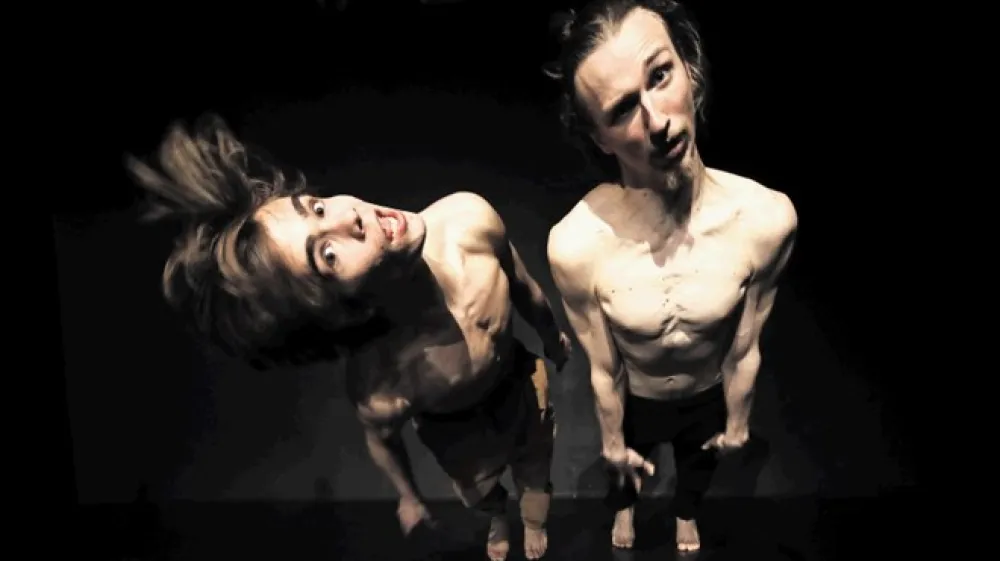 Fanta sta na igrišču in želita v polnosti izkoristiti iluzijo in spektakelsko razsežnost teatra – nizata vse trike, ki jih imata v rokavu: od prizora z grotesknimi obraznimi mimikami, do obveznih vratolomnih akrobatskih trikov, zelo eksplicitnega postavljanja v snope luči in navsezadnje tudi umora na odru z obveznim posebnim efektom umetne krvi. Pri tem pa motivacije in problematike, ki bi bili pobudniki teh prizorov onstran krča nenehnega zadovoljevanja publike, sploh ne razberemo več. Morda ta vrtinec presežeta v posameznih prizorih, ki se razpirajo kot možen material za samostojne raziskave: denimo v plesu rok, ki vseeno bolj kot na kakšen subtilen Hand Movie Yvonne Rainer spominja na množični ornament v malem, gotovo pa v prizoru, kjer oba Krajnčana izvajata skorajda orientalsko glasbeno partituro, ki se izvije iz Žiganovih besnenj in ima izvor v drobovju telesa in ga celega vzvalovi.