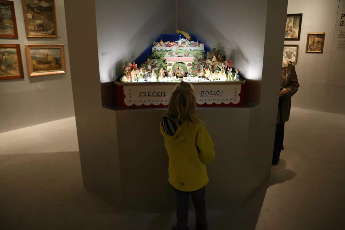Del razstave je razvrščen tudi po motivih. »Ker nismo imeli svojih vladarjev, so naše korenine postali mitološki liki, kralj Matjaž, povodni mož, zlatorog, in motivi, kot je sejalec; ta se na primer vleče od Groharja prek Gasparija do Irwinov,« meni Bojana Rogelj Škafar.