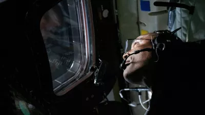 Christina Koch med potjo proti Luni pogleduje nazaj proti Zemlji. / Foto: Nasa via AP