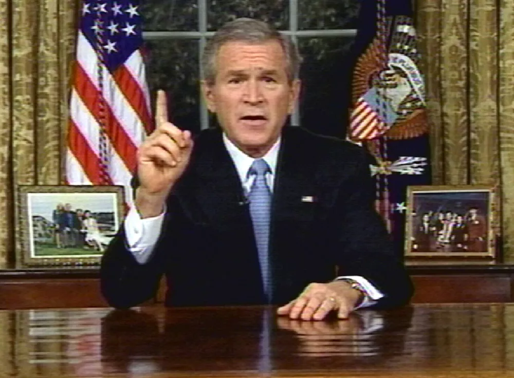 Spomnimo se znova 11. septembra 2001, ko sta se potniški letali, ki so ju ugrabili teroristi, zaleteli v stolpnici na Manhattnu. Svetovne televizijske mreže so poročale o dogodku, ki je osupnil svet. Vsi so s strahospoštovanjem opazovali, kako se dvojčka rušita s strašnim grmenjem. Pepel, ki se je dvignil nad New Yorkom, pa ni padel samo na to mesto, pač pa kmalu tudi na milijone ljudi na Bližnjem vzhodu. George W. Bush, tedanji ameriški predsednik, je kmalu zatem razglasil vojno proti terorizmu – najprej proti talibanom v Afganistanu, ki so skrivali Osamo bin Ladna, odgovornega za napad, nato še proti iraškemu baasističnemu režimu, ki z napadom ni imel nobene zveze. Povezavo med takratnim iraškim predsednikom Sadamom Huseinom in dogodki v Ameriki so sicer na vse pretege poskušali najti, toda neuspešno.
