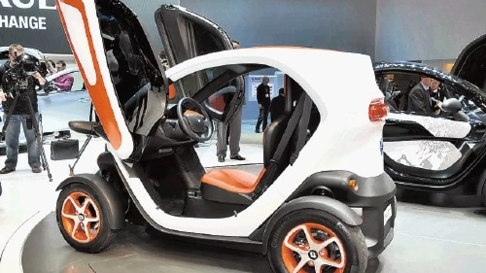 Mestnim gnečam in mlajšim (tudi po srcu) uporabnikom je namenjena avtomobilsko-motociklistična dvosedežna kombinacija twizy. Za voznikom sedi sopotnik (noge porine ob obeh straneh naprej), ki mora imeti kljub naprej dvigajočim se vratom za lezenje nazaj precej gimnastično telo. Električni motor so pripravili za počasnejšo različico (do 45km/h), da ga bodo lahko vozili tudi mlajši od šestnajst let brez vozniškega izpita za avto. Če špekuliramo s francosko ceno in podobnimi (pričakovanimi) državnimi subvencijami na električna vozila, bi pri nas znal stati okoli sedem tisoč evrov.