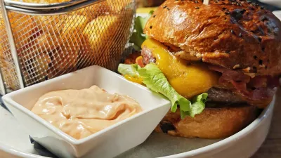 Izginjanje jedi z menija se je nadaljevalo tudi pri glavnih jedeh. Izmed dveh kosov mesa, ki so ju obetali, je zmanjkalo svinjine, k sreči so imeli vsaj teletino (26 evrov), ki jo rožnato spečejo in bogato obložijo s pirejem buče, pečenim krompirjem, gobicami in sirom. Manj težav pri naročanju je, če izberete burger. Vzeli smo klasiko s polpetom, v katerega meljejo govedino s kmetije Čas, burgerju pa, kot smo pri teh ameriških receptih vajeni, priložijo marsikaj, od pečenega krompirčka do sladkih in pekočih omak. Burger (12 evrov), kakršnih je še drugih tisoč v naših krajih: za okus ne poskrbi ne meso, ne štručka, ampak polivke.