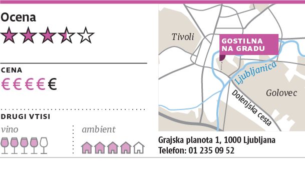 Sliši se veliko in jasno je, da so to nameravali pokriti s turističnim obiskom, ki pa ga je odpihnila korona. Prav tako je jasno, da je ponudba v večini ljubljanskih, k turistom usmerjenih lokalov podpovprečna. Zato je toliko bolj presenetljivo, da smo pred dvema sobotama na Ljubljanskem gradu pojedli za ljubljanske turistične razmere zelo dobro večerjo ali, če hočete, soliden degustacijski meni – štiri jedi, z dodatno uvodno kuharjevo kreacijo in kozarcem spodobne briške Medotove penine za 40 evrov.
