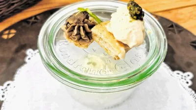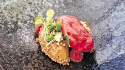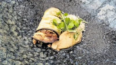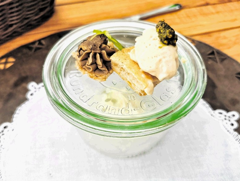 Da, kuhinja na gradu je po novem malce bolj ustvarjalna, podobno velja tudi za rulado iz jajčevcev, ki jih nadevajo z ajdovo kašo, dodajo pire cvetače in lešnikov drobljenec, žal pa tudi tartufovo olje, ki se pojavi v vse preveč jedeh. Dobrohoten nasvet: če zelenjavna jed stane konkretnih 18 evrov (v primeru, da je ne vzamete kot del menija), naj bodo v njej sveži tartufi, ne pa olje s poetičnim imenom »kapljice belega tartufa«.