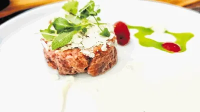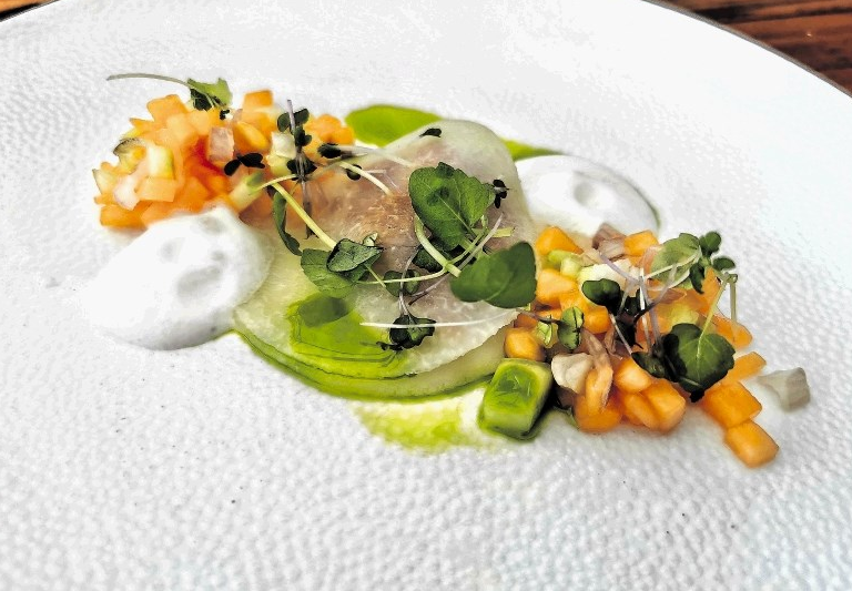 Degustacijo začnejo s tatarskim biftekom, ki ga podložijo s cvetačnim pirejem, malo sveže cvetače pa nastrgajo nanj. Za začimbo poskrbijo maline in zeliščno olje. Postrvji tatarski biftek se medtem skriva v kolerabnem žepku, dodajo mu solato, kumare, melone in šalotke ter sladko jogurtovo peno.
