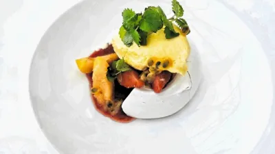 Kaj pa sladice? Tudi v tem primeru se držijo načel avtorske kuhinje, a ne gredo predaleč: pavlovo pripravijo s pasijonko, pasijonkinim sorbetom in raznim sezonskim sadjem, nekoliko bolj je nasiten čokoladni mousse z browniejem, malinovim sladoledom in malinovo omako.