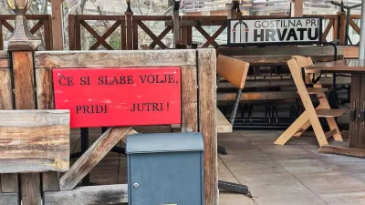 Do Hrvata pelje mestoma celo panoramska, v glavnem pa hudo vijugasta cesta iz doline. Iz celo preveč natančno prenovljene jedilnice je pogled na Vogel in njegove sosednje prijatelje nekaj posebnega, še veliko lepše je poleti na terasi, pod katero šumi rečica Ribnica. Ob prenovi so ohranili šank, čeprav so se za njim nekoč menda skoraj vsak vikend stepli, zdaj pa so domačini, vsaj tiste urice, ki smo jih preživeli v sosednji jedilnici, umirjeno moževali.