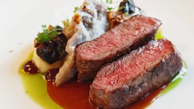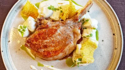 Je pa res, da je degustacijski meni Pri Hrvatu malce drugačen, in dokler ga imajo, ga velja izkoristiti. Tudi zaradi jelenovega hrbta. Saj veste, jelen je ob najmanjši napaki v kuhinji enostavno pretrd, tako za nož kot zobe. V Srednji vasi pa ne. Mehko rožnato meso je bilo ravno prav pečeno, spremljali so ga lokalni ajdov krap s hruško, pire zelene, suhe slive in simpatični karamelizirani orehi.