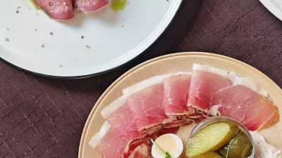 Pohvalijo se, da uporabljajo lokalne sestavine, zato nam je bilo jasno, da pri domači klobasi, bohinjski šunki, budžoli in zaseki ne moremo zgrešiti, kravji in dimljeni sir pa sta bila tako ali tako prav iz Srednje vasi. Med hladne predjedi štejejo tudi na tanko narezani goveji jezik z majonezo iz bučnega olja na solati iz krompirja in jabolka.