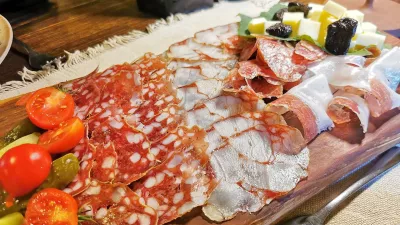 Vse omenjene pijače so nam prišle zelo prav ob bogatem narezku, ki povsem razumljivo v prvi vrsti ponuja specialitete njihovih krškopoljskih prašičkov. Tu je še neverjetno mehak domači kruh, eden s čemažem in sirom, drugi z ocvirki. Med krškopoljskimi dobrotami ne moremo mimo izvrstnih klobas in salam, a še bolje smo se razumeli z na tenko narezanima ribico s špehom in špehovko. Spremstvo, domače kisle kumarice, paradižniki, poltrdi sir in suhe slive, je učinkovitost krožnika za dve osebi (enajst evrov) samo še potrdilo.