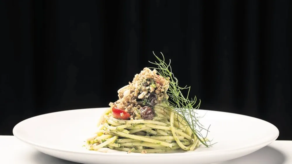 ŠPAGETI S SARDELAMI IN KOROMAČEM PO SICILIJANSKO