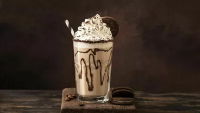 Cold Frappe Coffee or Frappuccino served with chocolate cookies and whipped cream. Mudslide delicious dessert coffee drink, copy space. / Foto: Mizina