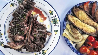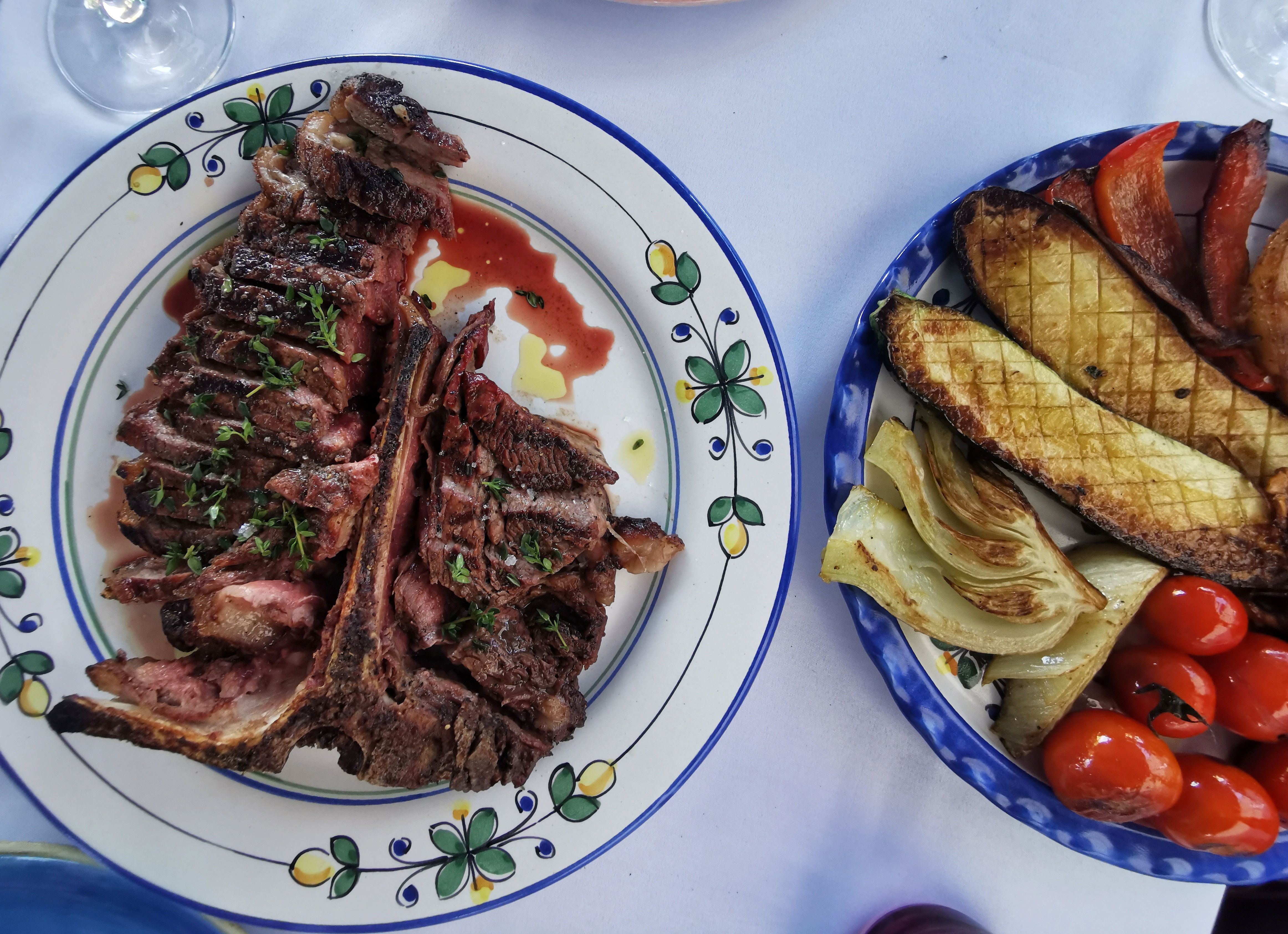 Meso z žara na oglje, pa naj bo to govedina ali jagnječje kronice, pa piščančje prsi, Fondov brancin in lignji – na Mirju je mogoče dobiti marsikaj. Mi smo si privoščili velikega, perfektno pečenega florentinca z več kot obilno prilogo popečenega paradižnika, bučk, paprike, koromača, lisičk in zapečenega krompirja.