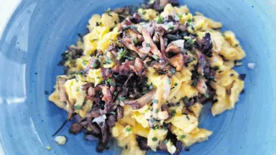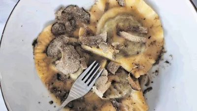 Po drugi strani imajo bogato serijo testenin in rižot, za bolj izbirčne pa tudi nekaj razkošnejših glavnih jedi. Kar malce so ponosni na hišne raviole z jajcem, pestom in tartufi, ki že z dimenzijami delujejo kot nasitna glavna jed. Nič drugače ni z lisičkami z jajcem, pravzaprav že skoraj omleto z lisičkami, ki so jih ob našem zadnjem obisku imeli v posebni ponudbi. Tudi tokrat so bili zraven nenadkriljivi vroči kruhki.