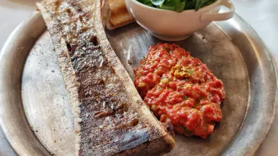 Štajerska vina je v drugih delih Slovenije težko dobiti, mi pa radi pijemo ne le Koglova, ampak tudi vina Dveri Pax in Gaubeja, če so le na voljo. V našem primeru se je rdeča štajerska zvrst lepo ujela s pozdravi iz kuhinje in še bolj z nadaljevanjem, tatarskim biftkom, ki so mu ob bok postavili kost s pečenim kostnim mozgom.