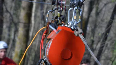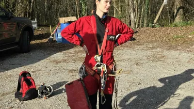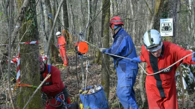 Električni vitel. Zadaj Tomaž Grdin, ki pripravlja dokumentarni film o čiščenju jam. / Foto: Tomaž Bukovec