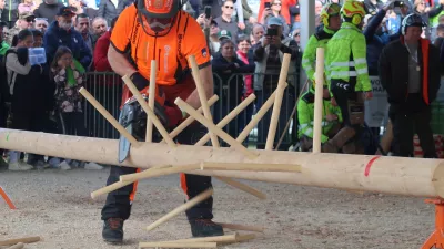 Tekmovalci iz dežel od Japonske do Združenega kraljestva so prišli preverit, do kod sežejo s svojimi gozdarskimi veščinami. / Foto: Matej Povše/SiDG