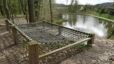 Na drugi strani mostu stopimo do didaktičnega lesenega kozolčka ob robu parka Dvor, ki so ga zgradili lastniki gozdov. »To je še eden od načinov, kako se lahko ljudje čutijo povezani s potjo. Ali pa sami gojenci prevzgojnega doma, ki je skrbnik tega čudovitega parka. Naredili so velik lesen stol, ki je postal taka zanimivost, da se marsikdo ustavi in slika z njim. Tako se tudi gojenci doma čutijo del te poti,« je pojasnil filozofijo prepletanja vsega na tematskih poteh Jože Prah.
