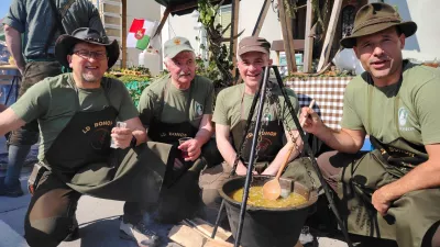 »Če boste šli kdaj z nami na jago, boste morda izvedeli za kakšno,« so se šalili lovci, za katere je znano, da so hudomušni. Poleg gostiteljev Šentjurčanov so se kuhanja kisle župe lotili člani LD Bohor Planina, LD Handil Dobje, LD Ponikva, LD Jurklošter, LD Štajerske lovke in LD Oplotnica. Ko so bukova drva zagorela in so pristavili kotličke, jim je šlo delo dobro od rok.