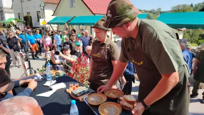 »Mi pa smo s seboj prinesli samo veliko dobre volje,« je pristavil Peter Zakšek, član LD Bohor Planina. Ko je pokusil župo, pa je vendarle razkril, da so jo skuhali po recepturi, ki mu jo je zaupala stara mama. »V župo je treba dati tudi čim več sebe,« je poudaril Zakšek. »Seveda je zelo pomembno, da je v župi najboljše svinjsko meso, tudi nogice oziroma parklji ne smejo manjkati. In te smo prinesli kar s seboj,« so nam pripovedovali lovci in vabili obiskovalce na svoje lepo urejene stojnice, na katerih so ponujali še druge dobrote. Sladke in mesnate. »Saj veste, da imamo lovci dobre divjačinske salame, zato pridite in jih pokusite,« so nagovarjali mimoidoče, ki so jim med kuhanjem župe seveda gledali pod prste.