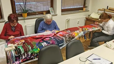 »Izdelek pušča globok umetniški in identitetni vtis v skupnosti in postavlja temelj za nadaljnje medgeneracijske projekte, ki bodo še naprej tesno prepletali vse segmente udejstvovanj. Obenem je dokaz, da skupaj nismo le povezovalci prepletenih niti, ampak tkalci skupne usode – nevidne in vidne, a vedno močne,« je na sprejemu pri županu poudarila Uršula Vezonik, predsednica društva Koroškega medgeneracijskega centra (KMC) Ravne, ki letos slavi 12 let uspešnega dela. Nekaj laskavih besed je članicam, ki so sodelovale pri projektu, namenila tudi strokovna vodja ob ustanovitvi društva KMC Marjana Kamnik ter pobudnica projekta in mentorica/umetnica, akademska slikarka Katja Felle, ki se je zahvalila za opravljeno delo, ob tem pa poudarila unikatnost izdelka. Štirinajst članic se je namreč lotilo vezenja abstraktnega motiva, ki izhaja iz računalniško obdelanega vzorca slike na ekranu, ki simbolizira prepletanje preteklosti, sedanjosti in prihodnosti.