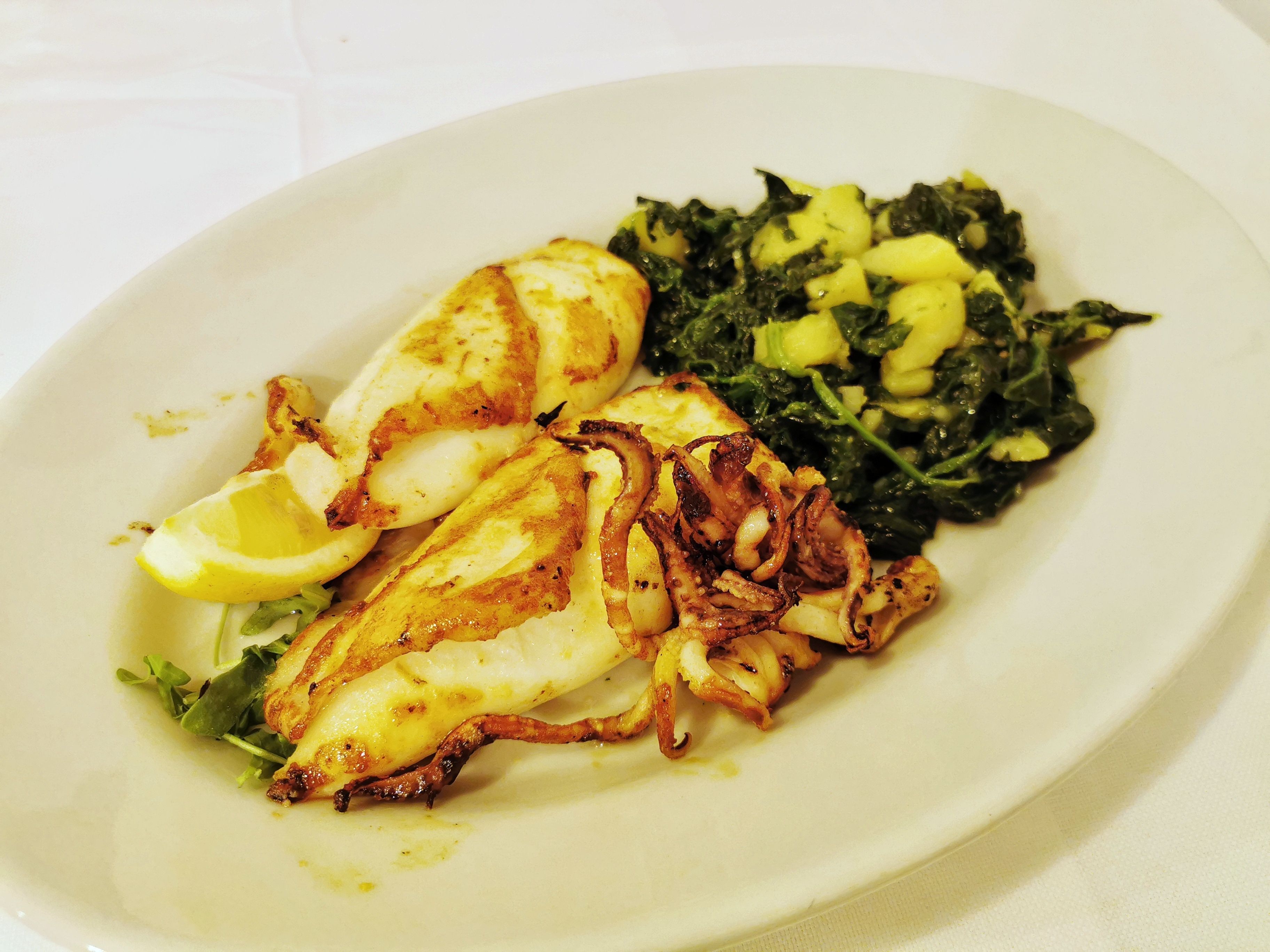 Po penečem smo se med večerjo naslonili na malvazijo, je pa zanimivo, da kljub širokemu izboru istrskih poudarjajo tudi briške malvazije, med njimi sijajno Iaquinovo, ki stane znosnih 27 evrov. Briška kapljica se je po pričakovanjih izjemno povezala z bogatim izborom hladnih ribjih znancev: okusna hobotnica v solati, pa prav tako sipa, ki ji v solati dodajo stebelno zeleno in olive. Osvežilno. Podobno kot sardele na šavor in kozice na šavor, ki jih opremijo s pinjolami in rozinami. Na voljo je še prvovrstni bakalar, ki gre na mehak kruh z olivami, in še bivolja mocarela z inčuni, sušenim paradižnikom in baziliko. Vrtiljak simpatičnih predjedi, ki se povezujejo predvsem z oljčnim oljem, niso pretežke, pa tudi cena tega bogatega nabora ne preseže 13 evrov za osebo.