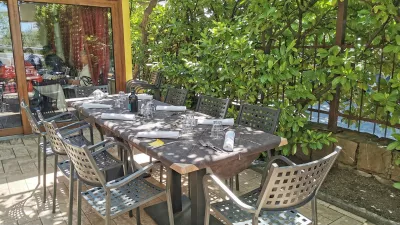 Mizo za nedeljsko kosilo smo si izprosili na terasi, kjer se, zanimivo, z bližnjega avtocestnega viadukta ni slišalo prometa, so pa zato toliko bolj glasno mimo nas ropotali motoristi, željni ovinkov na »stari cesti«. Pod pergolo je bilo prijetno toplo, le včasih je malce zapihalo, kar pa kosila, ki smo si ga zastavili, ni motilo. Začeli smo okoli enih popoldne, medtem ko so se drugi gostje, več je bilo slovenskih kot tujih, zares začeli zbirati okoli dveh.