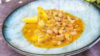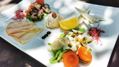 Začeli smo s pisano hladno morsko četo. Na krožnik postavijo sipo in hobotnico v solati, veliko žlico bakalarja, po dolgem času smo spet pokusili dimljeno mečarico in sardele na šavor, zraven so oljčno olje, limona in rukola. Morski gušt, kot imenujejo krožnik, vas bo stal zmernih 16 evrov.