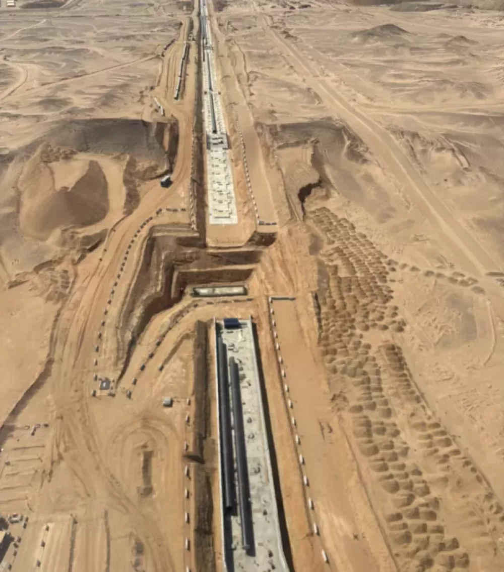 Najnovejše fotografije, ki jih je objavil Giles Pendleton, glavni operativni direktor projekta The Line, prikazujejo napredek pri izgradnji osnovne infrastrukture mesta.
