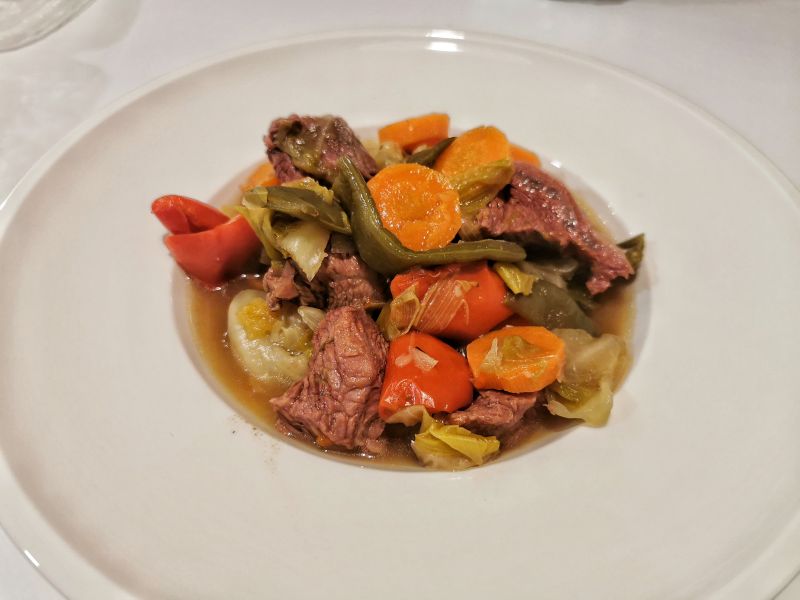 Nas pa so vendarle najbolj zanimale enolončnice ali čorbe, če hočete. Recimo sarma, ki jo prodajajo v kategoriji dnevnih jedi. Recept zapoveduje zelo kislo jed, bolj kot je običaj pri slovenskih različicah. Še bolj po našem okusu je bil bosanski lonec, obilna enolončnica, v katero ob mesu (brez svinjine, seveda) narežejo korenje, stročji fižol, zelje, papriko, kolerabo… Še ena jed, ki zadostuje za veliko več kot eno osebo, je pa po drugi strani treba zanjo odšteti konkretnih deset evrov.