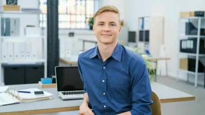 Friendly relaxed young businessman in the office turning in his chair to look at the camera with a warm smile / Foto: Stockfour