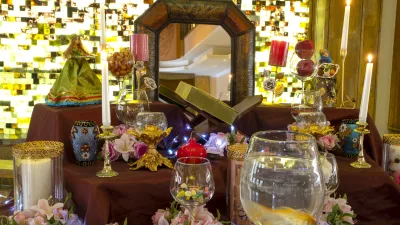 Začnimo tokrat malce drugače. Predstavljajmo si, da nam zadiši po hijacinti oziroma, kot bi rekli tamkaj, zumbulu in sveže vzkaljeni pšenici. Na koledarju je izpisan 21. marec, pomladno enakonočje. V stanovanju nekje na severu Teherana, v senci mogočnega gorovja Alborz, se družina zbere okoli mize, haftsin. Na njej je skrbno razporejenih sedem predmetov, ki se v perzijščini začnejo na črko s – jabolko, česen, kis, kovanci … Ob njih pa so ogledalo, zlata ribica, ki kroži v stekleni krogli, in knjiga. Če bi bili v Kairu, Damasku ali Riadu, bi bila ta knjiga skoraj zagotovo Koran. Na iranski mizi za novruz, praznik perzijskega novega leta, pa ob sveti knjigi islama (ali pa pogosto kar namesto nje) leži debel zvezek poezije. Največkrat Hafisove lirike ali Firduzijevega epa Šahname.
