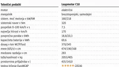 Leapmotor je ta trenutek verjetno najbolj vroča kitajska znamka pri nas. Letos so celo najbolje prodajana znamka električnih vozil v Sloveniji. To je zgleden uspeh za podjetje, ki je svoj prvi avtomobil v prodajo poslalo leta 2019. No, danes ima 20 odstotni delež v Lepmotorju tudi Stellantis. Na podlagi testa njihovega družinskega cestnega terenca C10, pa ni treba preveč ugibati, kaj je privlačilo stranke.