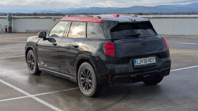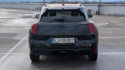Ko pogledamo onkraj tehnologije in brandiranja, vidimo nekakšnega kompaktnega križanca. Z dolžino 4,08 metra in medosno razdaljo 2,6 metra se v ponudbi minijev uvršča med cooperja in contrymana. Dizajn je bolj škatlast in mestnoterenski, a ohranja igrivost minijev in predvsem nizko lego na cesti. Njegov najlepši kot je od spredaj. Od strani je videti že nekoliko odgovorno. Od zadaj razkriva izrazit razkorak koles, ki pa ne pospeši bitja srca.