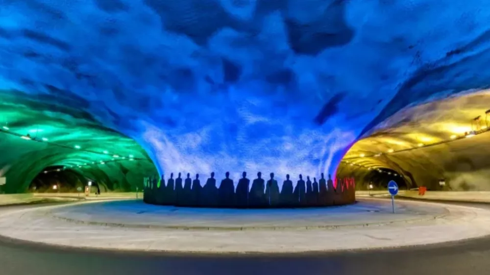Neokrnjena pokrajina vulkanskih otokov, ki v severnem Atlantiku ležijo na pol poti med Islandijo in Škotsko, navdušuje obiskovalce. Zato sta še kako pomembna najnovejša podmorska predora. »To sta naša Eifflov stolp in Big Ben,« pravi Teitur Samuelsen, izvršni direktor podjetja Eystur-og Sandoyartunlar, ki upravlja predore. »Ljudje, zlasti turisti, se vozijo skoznje samo zato, da bi videli umetniška dela.« Ob tem je treba omeniti, da so predori polni skulptur.