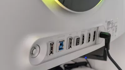Na področju povezljivosti monitor ponuja standardna sodobna videovhoda (HDMI 2.1 in displayport), bi mu pa godil tudi kakšen priključek več. Denimo USB-C za napajanje. Monitor ne premore niti stikala KVM, ki bi omogočilo lažje preklapljanje med dvema povezanima računalnikoma. To stikalo namreč omogoča, da na monitor povežemo miško in tipkovnico ter dva računalnika. Brez tega stikala pa je treba ob preklopu na drug računalnik preklapljati tudi periferne naprave. To je zlasti nadležno, ko si več ljudi v gospodinjstvu deli isto računalniško mizo, a uporabljajo različne računalnike. Prav tako monitor nima operacijskega sistema tizen, kar pomeni, da nima vgrajenih funkcij pametne televizije. To premore Samsungov model G80SD.