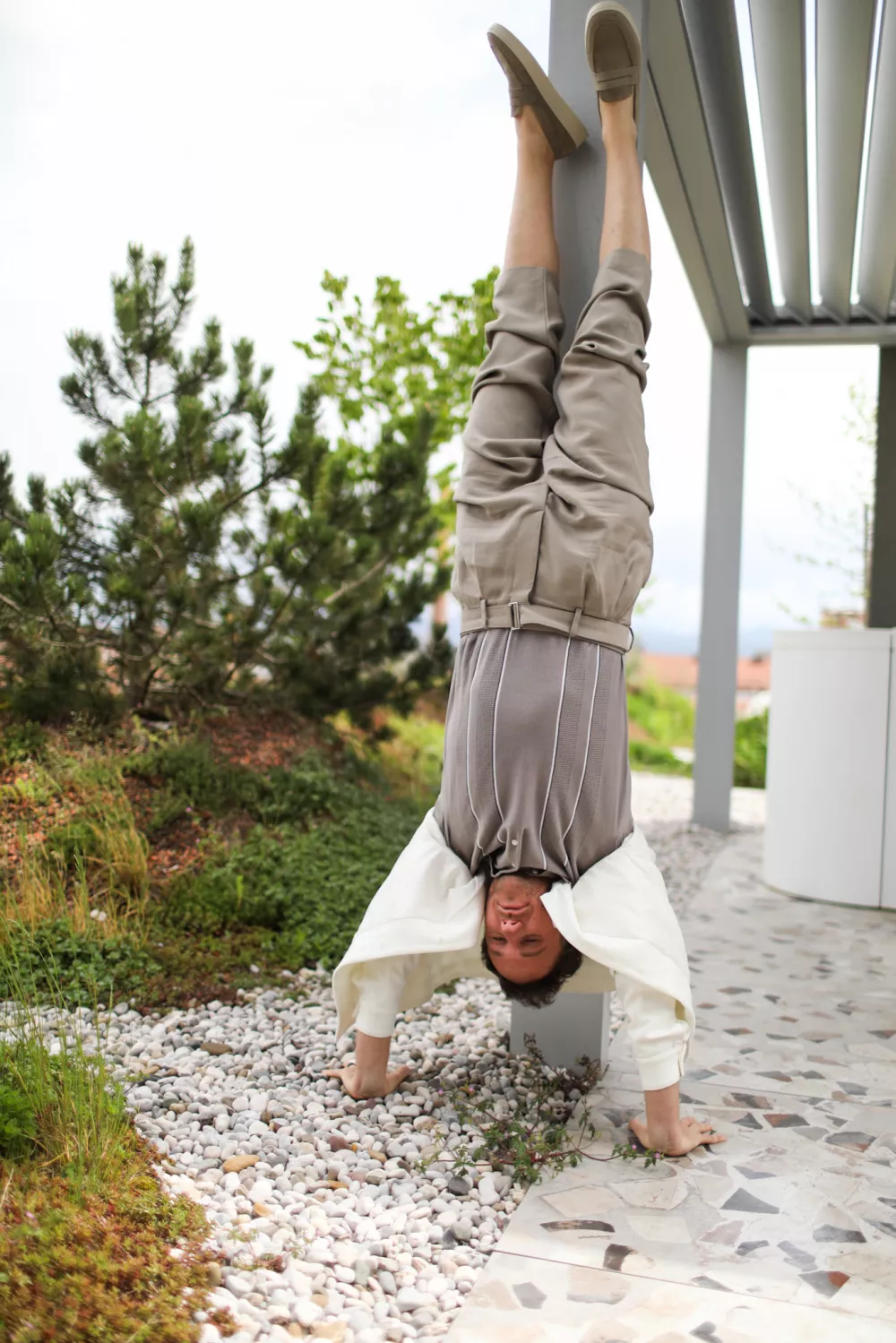 Ker ni enostavno biti pol minute obrnjen na glavo in peti, se je pred Emo nekaj časa vsakodnevno z ekipo pripravljal na to, pripravlja se tudi sedaj in vsak dan izvaja stojo ob zidu, je pojasnil.